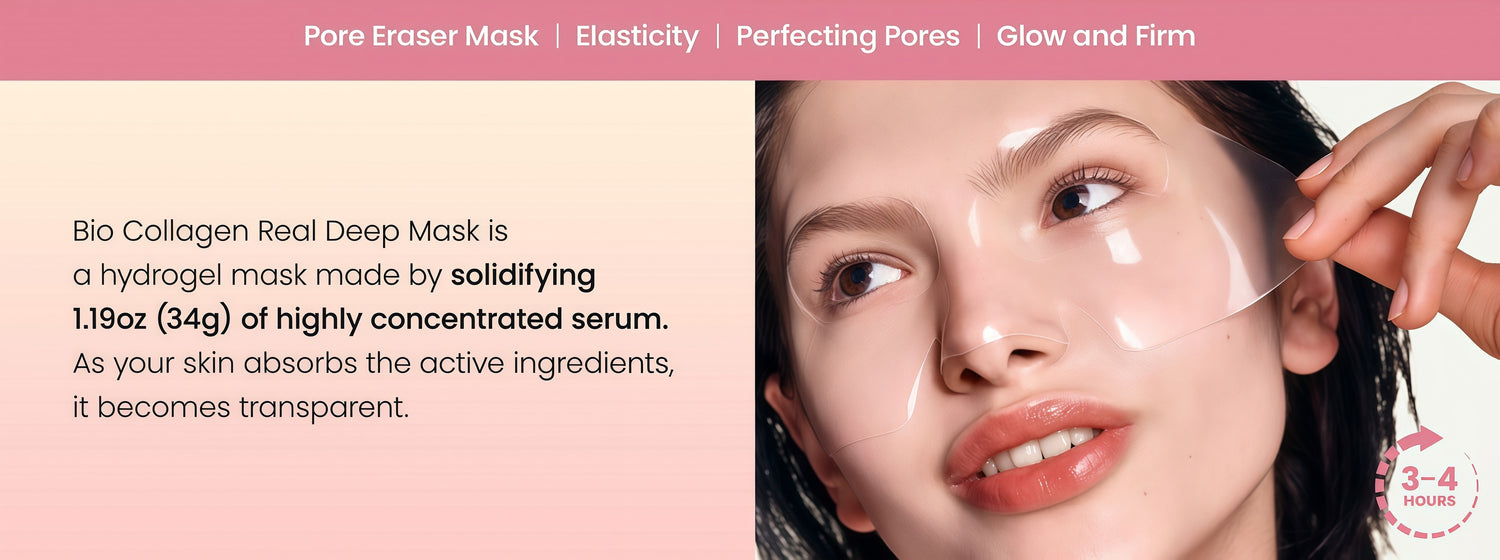 Bio Collagen Real Deep Mask is a hydrogel mask molded with essence to provide hydration. Longer use enhances absorption of beneficial ingredients and the excellent adhesion overtime make them suitable for overnight or 3-4 hours during the day.